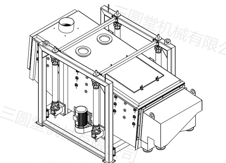 方形搖擺篩主要由:篩箱、篩框、篩網(wǎng)、振動(dòng)馬達(dá)、馬達(dá)基座、減振彈簧和支架組成。